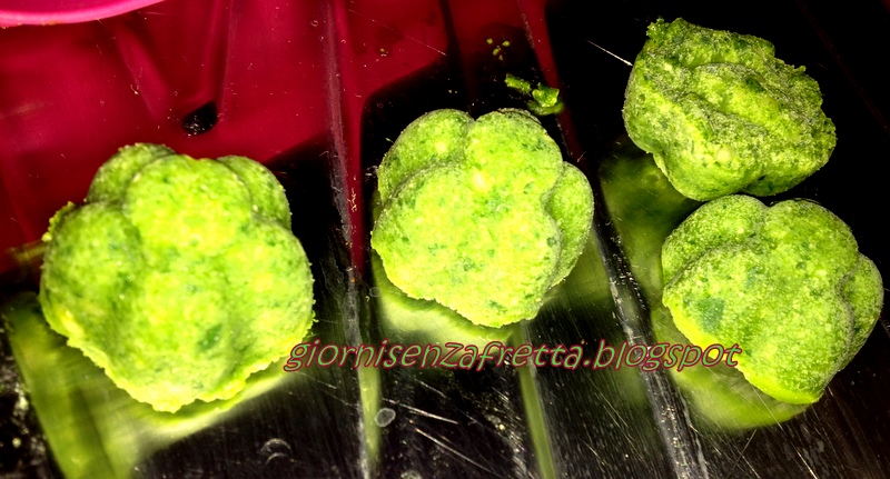 Ho messo in congelatore circa 24 ore poi trascorso il tempo ho spostato le formine di pesto in un sacchetto di plastica e le ho lasciate in congelatore,pronte per l’uso.