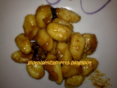Ieri a pranzo ho deciso di preparare un buon primo piatto che ho visto qualche tempo fa girando nel web:gnocchi di patate,che purtroppo non sono riuscita a fare a causa del poco tempo a disposizione,accompagnati a gorgonzola e prugne.