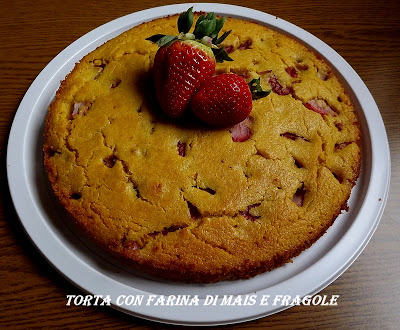 Amiche vi auguro un buon fine settimana con la mia torta di farina di mais e fragole.