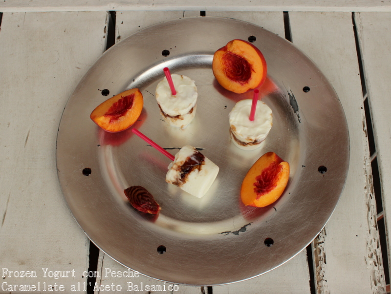 Frozen yogurt con pesche caramellate all’aceto balsamico