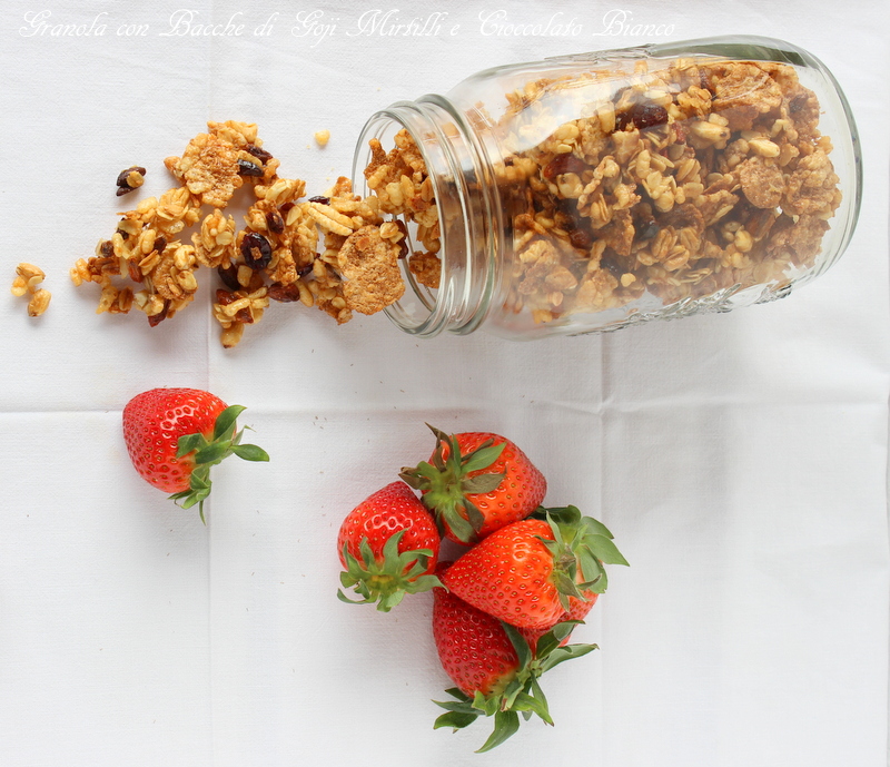 Home Ricette per colazione Granola con mirtilli, bacche di Goji e cioccolato bianco