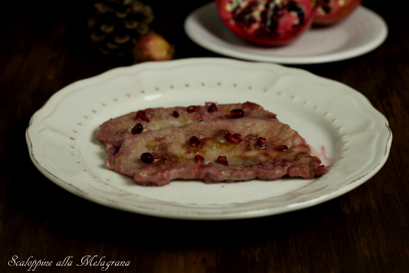 Oggi un secondo piatto davvero buonissimo, scaloppine alla melagrana, una ricetta semplice dal gusto raffinato, ottima per i vostri pranzi o cene in compagnia durante il periodo natalizio.