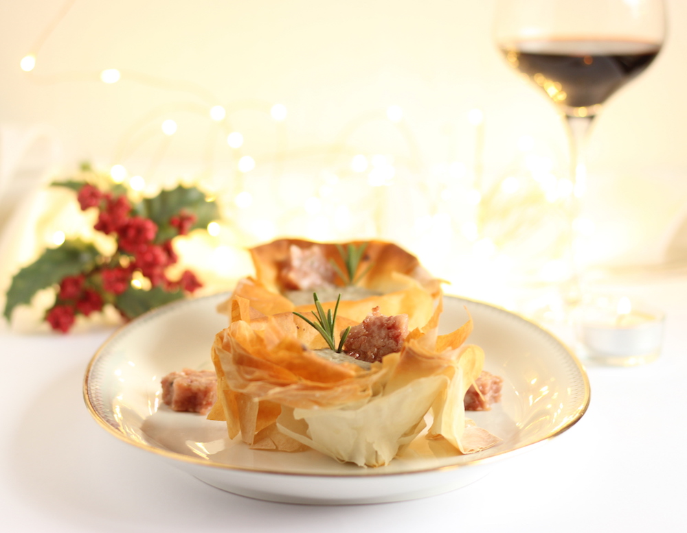 Cestini di pasta fillo con purea di lenticchie e cotechino