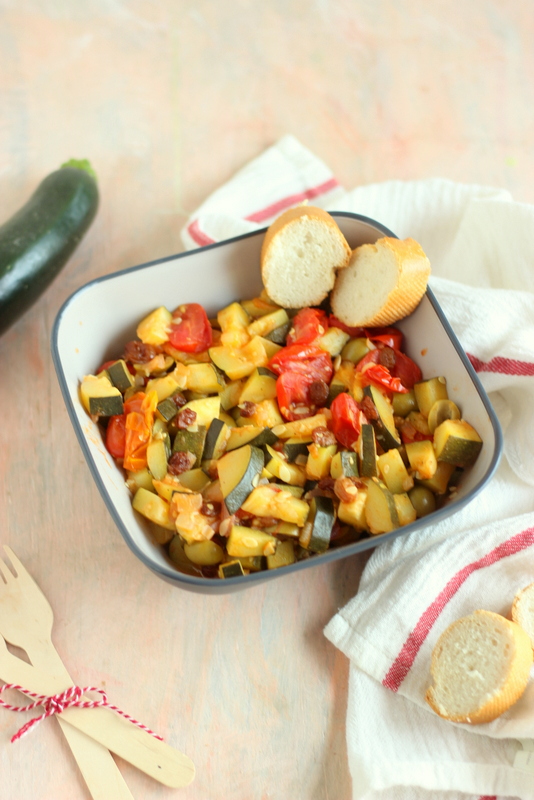 Lasciate raffreddare un po’ prima di servire: la caponata di zucchine è ancora più buona tiepida o a temperatura ambiente.