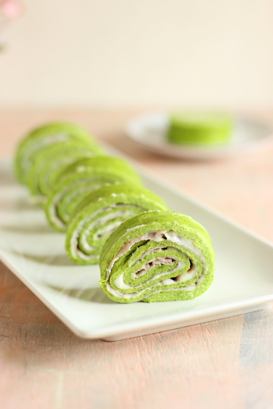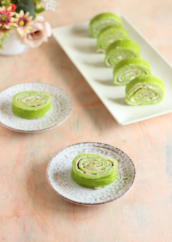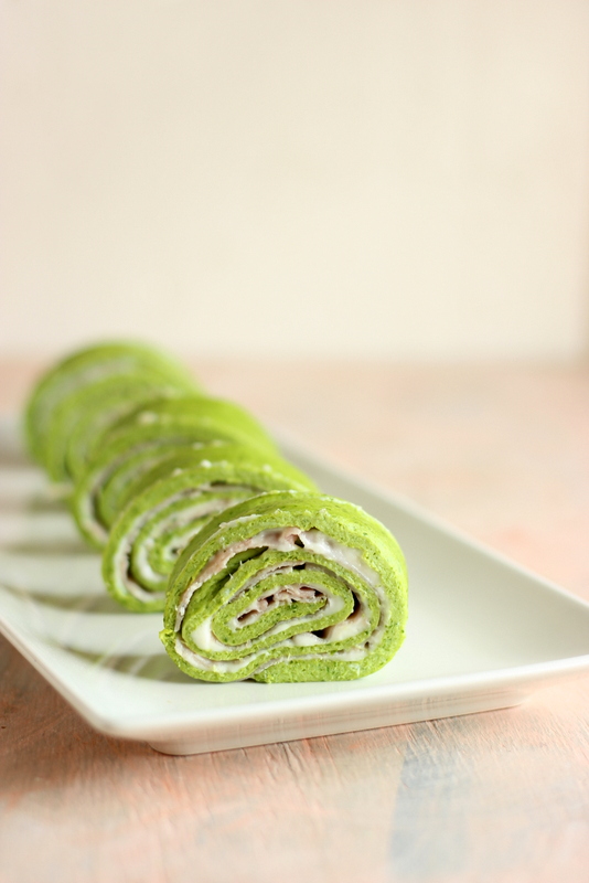 Una volta fredda, srotolate la ase e spalmate lo stracchino aiutandovi con un cucchiaio, aggiungete le fette di prosciutto e arrotolate di nuovo.
