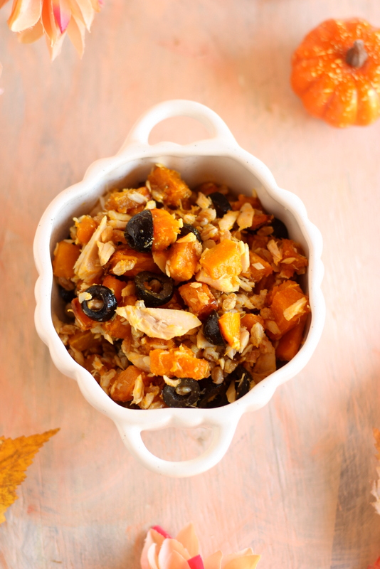 Home Piatti unici Insalata di farro con zucca, olive e sgombro