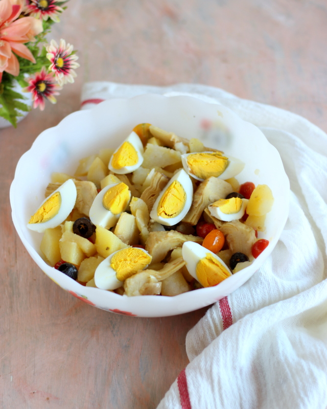 INSALATA CAPRICCIOSA CON PATATE CARCIOFI POMODORINI OLIVE